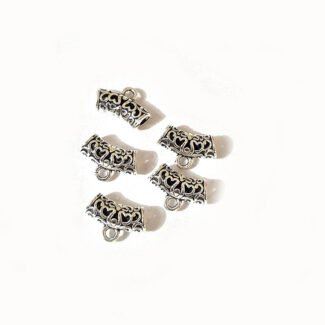 Silver plated pendant holder bail findings, size 17x5mm with 3mm hole – perfect for attaching pendants and charms in jewelry making.