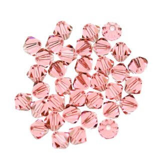 Premium quality 4mm Pink Bi-Cone Crystal Glass Beads available in wholesale pack of 7200 pcs (50 Gross). These faceted glass spacer beads provide beautiful sparkle and are perfect for bracelets, necklaces, earrings, bead embroidery and DIY jewellery making projects.