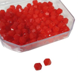 High quality 4mm Red Bi-Cone Crystal Glass Beads available in wholesale pack of 7200 pcs (50 Gross). These faceted red spacer beads are perfect for bracelets, necklaces, earrings, bead embroidery and DIY jewellery making projects.