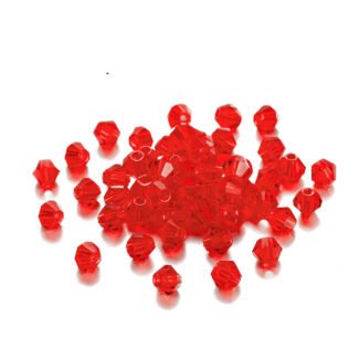 High quality 4mm Red Bi-Cone Crystal Glass Beads available in wholesale pack of 7200 pcs (50 Gross). These faceted red spacer beads are perfect for bracelets, necklaces, earrings, bead embroidery and DIY jewellery making projects.