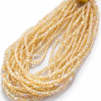Beautiful yellow AB glass seed beads size 6/0 perfect for bracelets, necklaces, earrings, bead weaving and embroidery projects. These vibrant beads are sold in pack of 50 strands, with each strand approximately 15 inches long.
