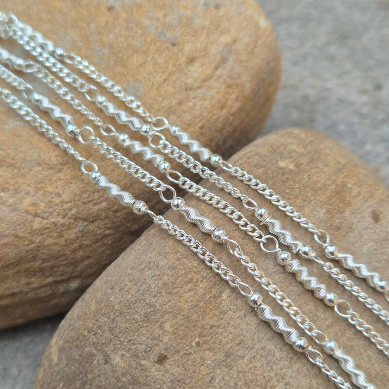 1 Meter Pkg. Beaded Silver tube beads handmade chain for Jewelry making