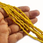 23 Pcs. Beads Large Size Vintage glass beads for tribal jewelry making The Beads hole about 3mm The color is Yellow and Approximately Size 24x12mm The weight of one string about 200 Grams