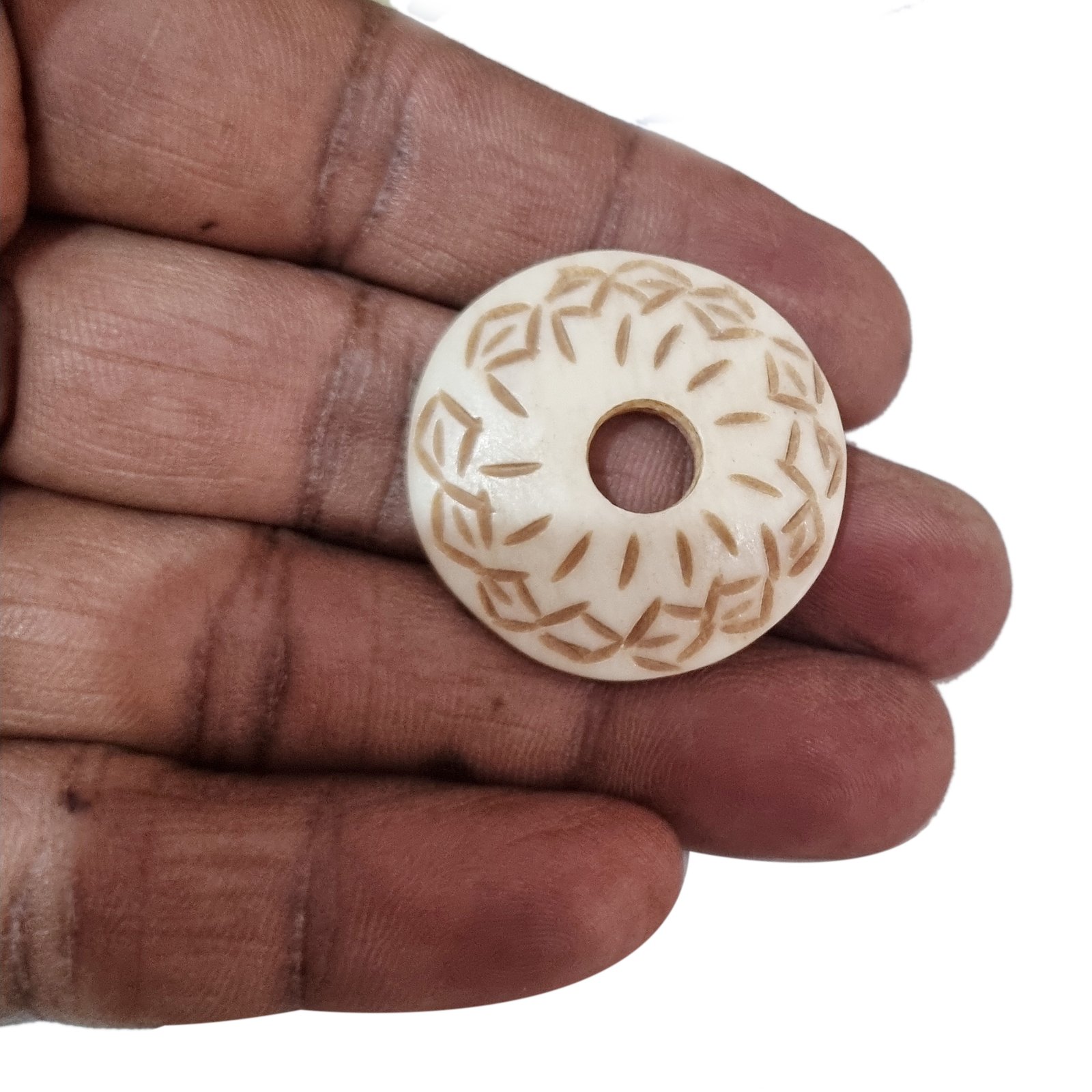 10pcs Bag/Pack Vinage Natural Bone Beads Pendant for Jewelry Making Disc Carved Natural Bone Pendants for Tribal and contemporary jewelry making Size approximately 30mm