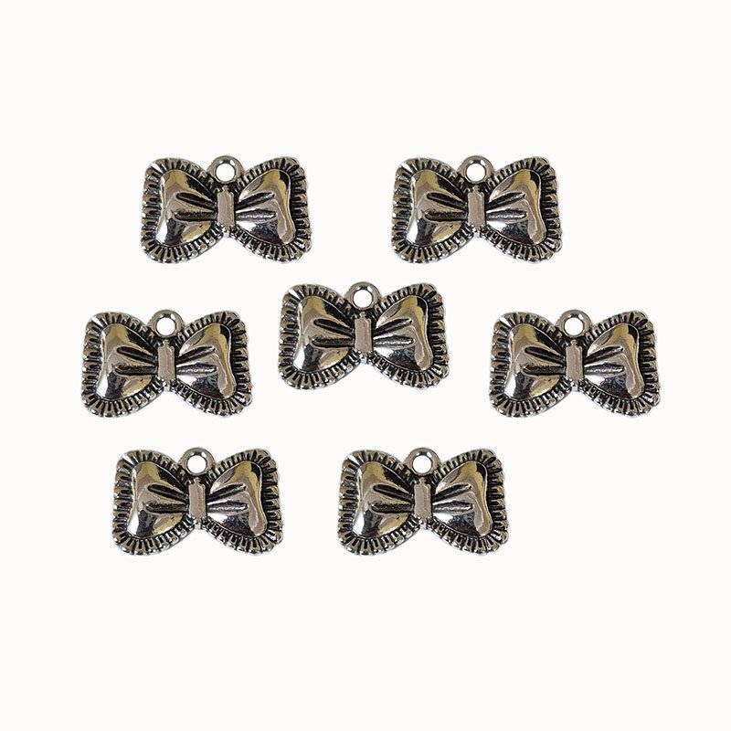 Silver oxidized bow charms 18x12mm – durable jewelry making findings for necklaces, bracelets, earrings, keychains, and DIY crafts.