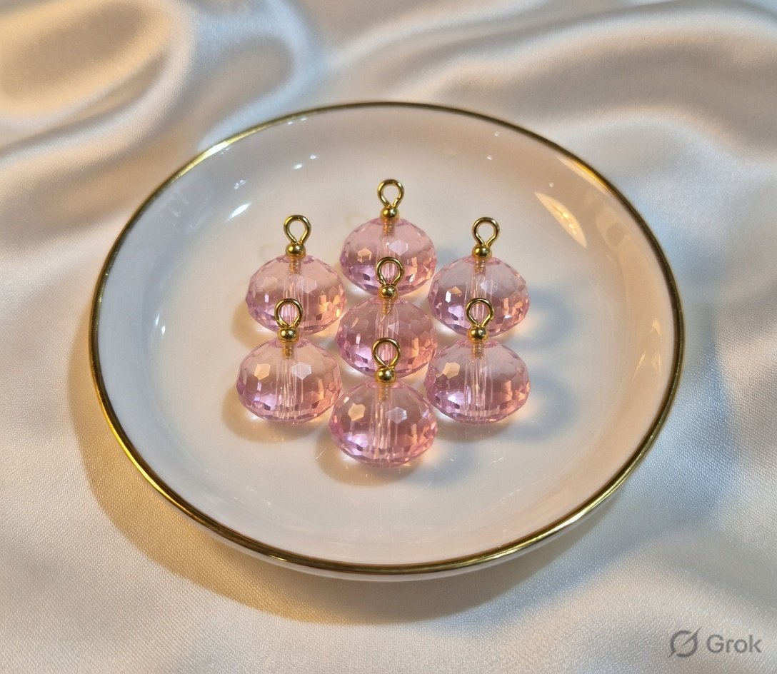 Enhance your jewelry creations with these stunning faceted glass crystal drop beads in a beautiful soft pink tone. Designed in a rounded rondelle shape with precision-cut facets, these beads reflect light brilliantly, giving a sparkling and luxurious appearance.