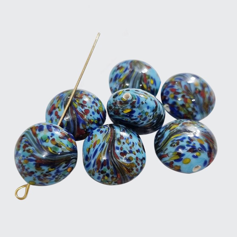 20pcs Disc Shape Beads, Turquoise Blue handmade lampwork glass beads with frit dots and a shiny glass bead finish. Each handmade glass bead pattern is unique making each glass bead an original work of art.Size about 17x17x12mm