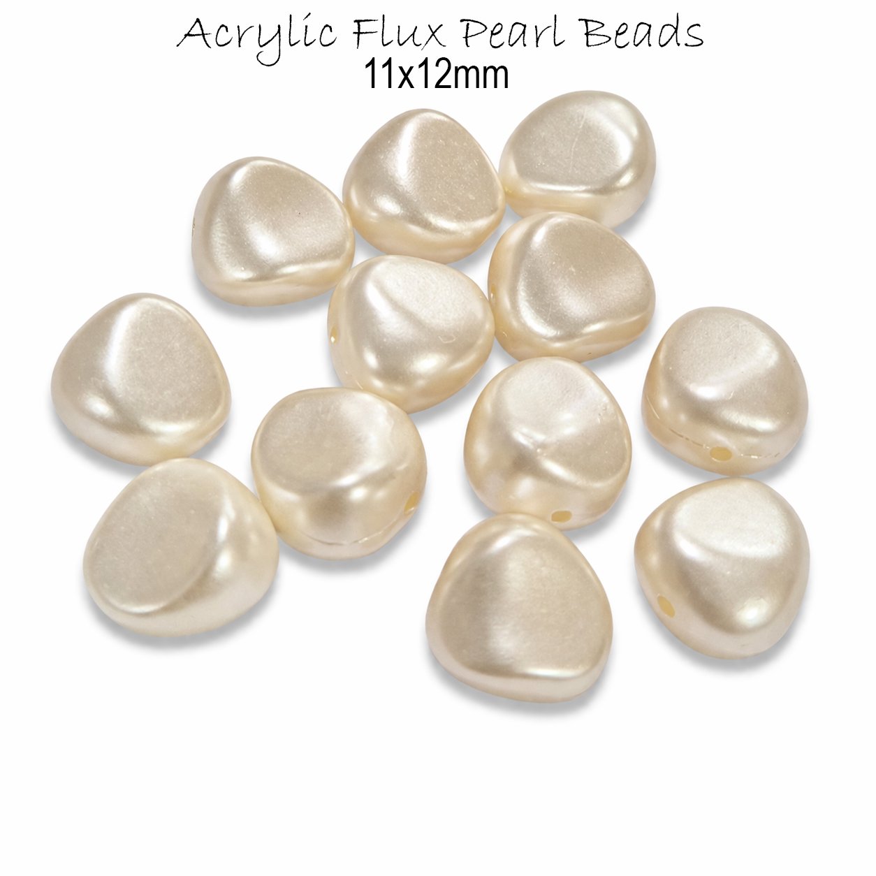 30pcs Pkg. Premium Flux Pearl , Acrylic Beads for Jewelry Making DIY Craft Supplies in size Approx 11x12mm Cream Color