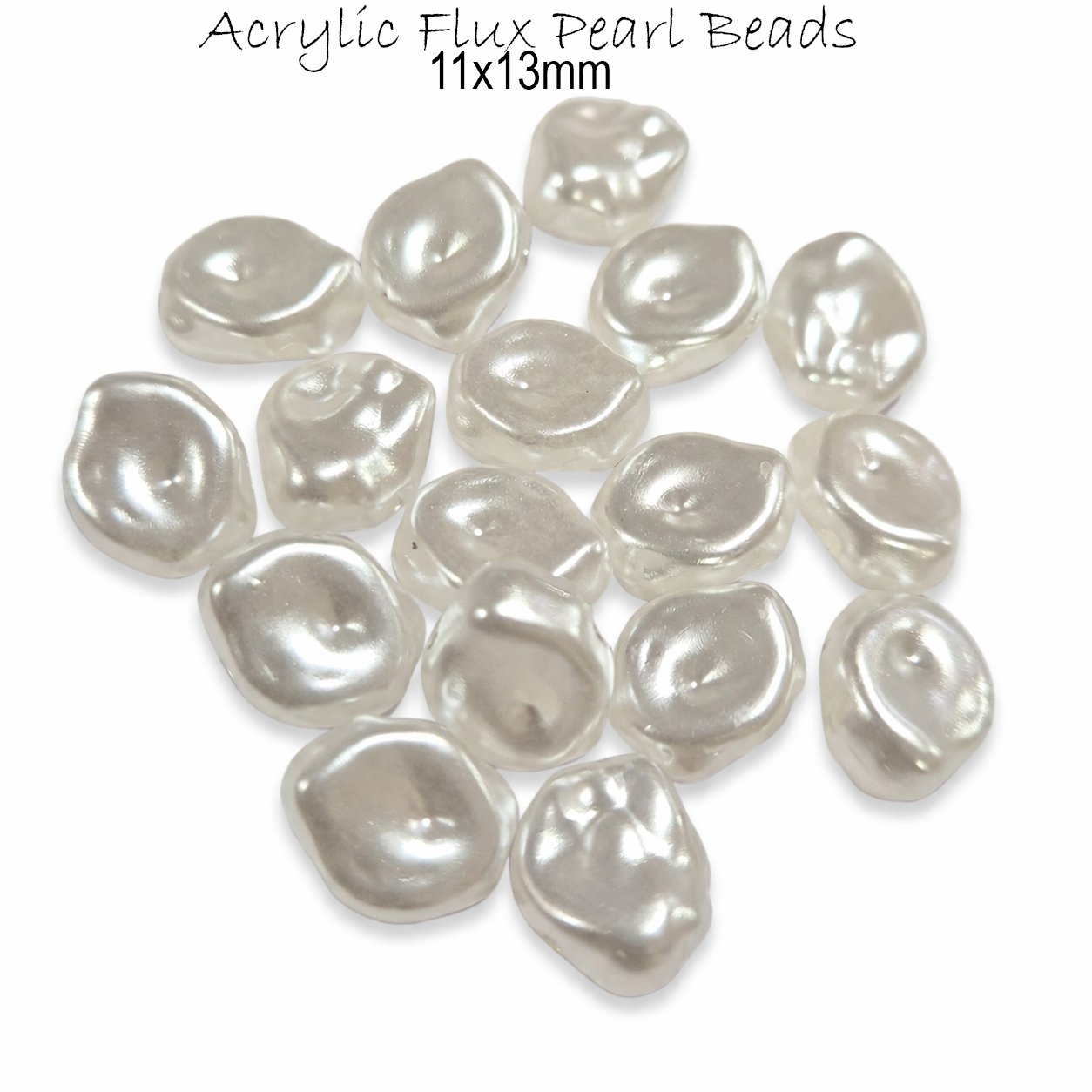 30pcs Pkg. Premium Flux Pearl , Acrylic Beads for Jewelry Making DIY Craft Supplies in size Approx 11x13mm White Color
