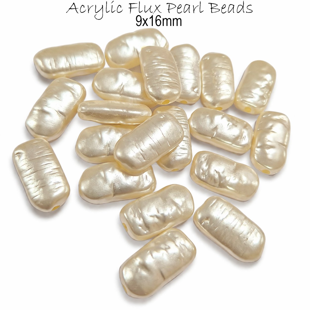 30pcs Pkg. Premium Flux Pearl , Acrylic Beads for Jewelry Making DIY Craft Supplies in size Approx 9x16mm Cream Color