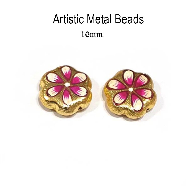 High quality artistic metal beads made from durable brass material featuring elegant brushed finish and beautiful hand painted floral design these beads offer a premium look with long lasting color fast coating perfect for creating unique earrings necklaces bracelets and statement jewelry each bead is finely crafted to give a traditional and modern fusion look ideal for jewelry designers resellers and DIY craft lovers available in multiple sizes these beads enhance your jewelry designs with a rich artistic touch strong durable and easy to use perfect for bulk and retail jewelry making supplies