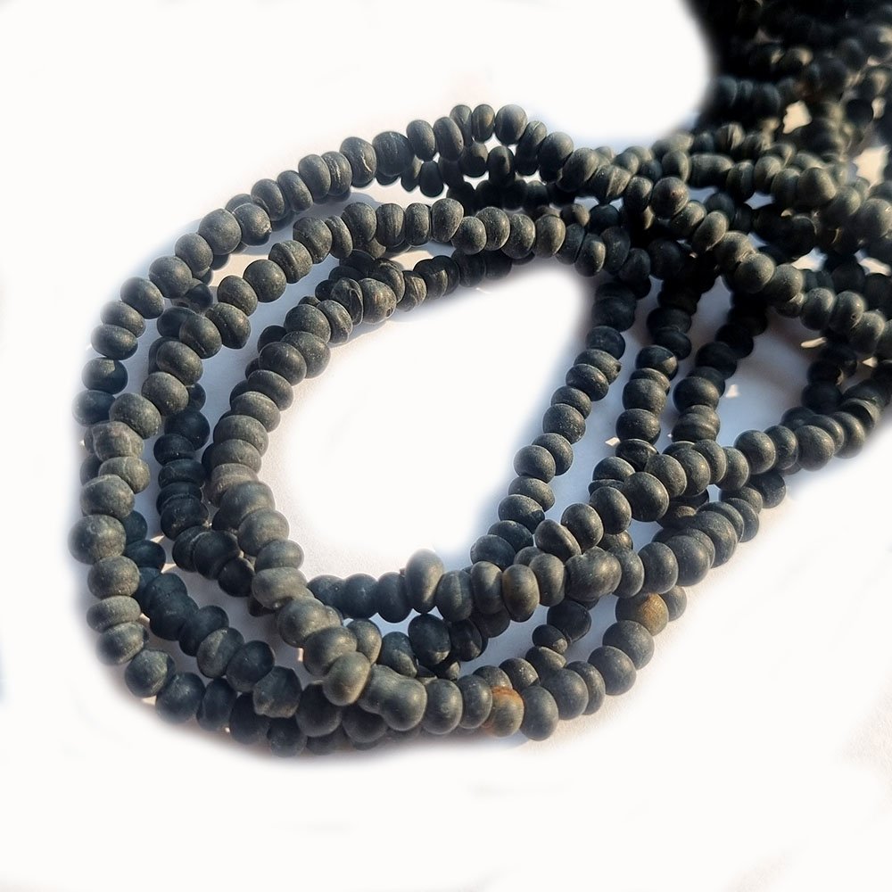 19 Pcs. Beads Large Size Vintage glass beads for tribal jewelry making The Beads hole about 3mm The color is Black and Approximately Size 22x14mm The weight of one string about 110 Grams