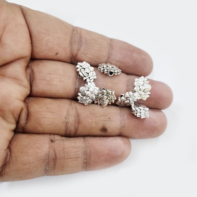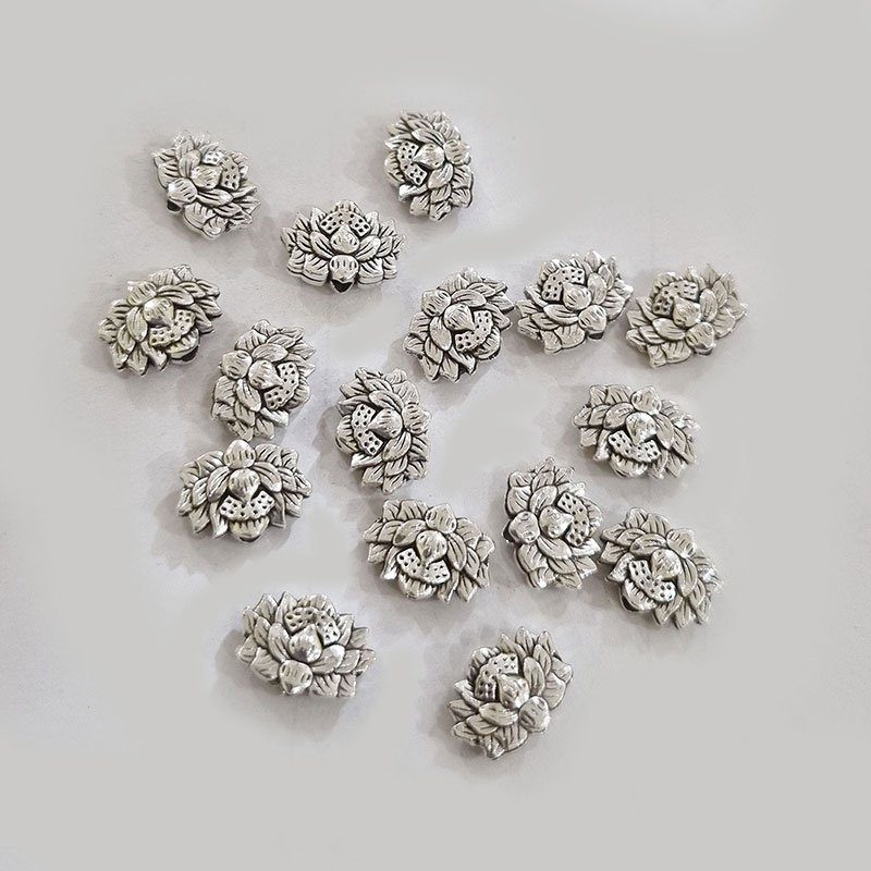 50 Pcs Lotus Flower Beads, Silver Oxidized in size about 12x9mm