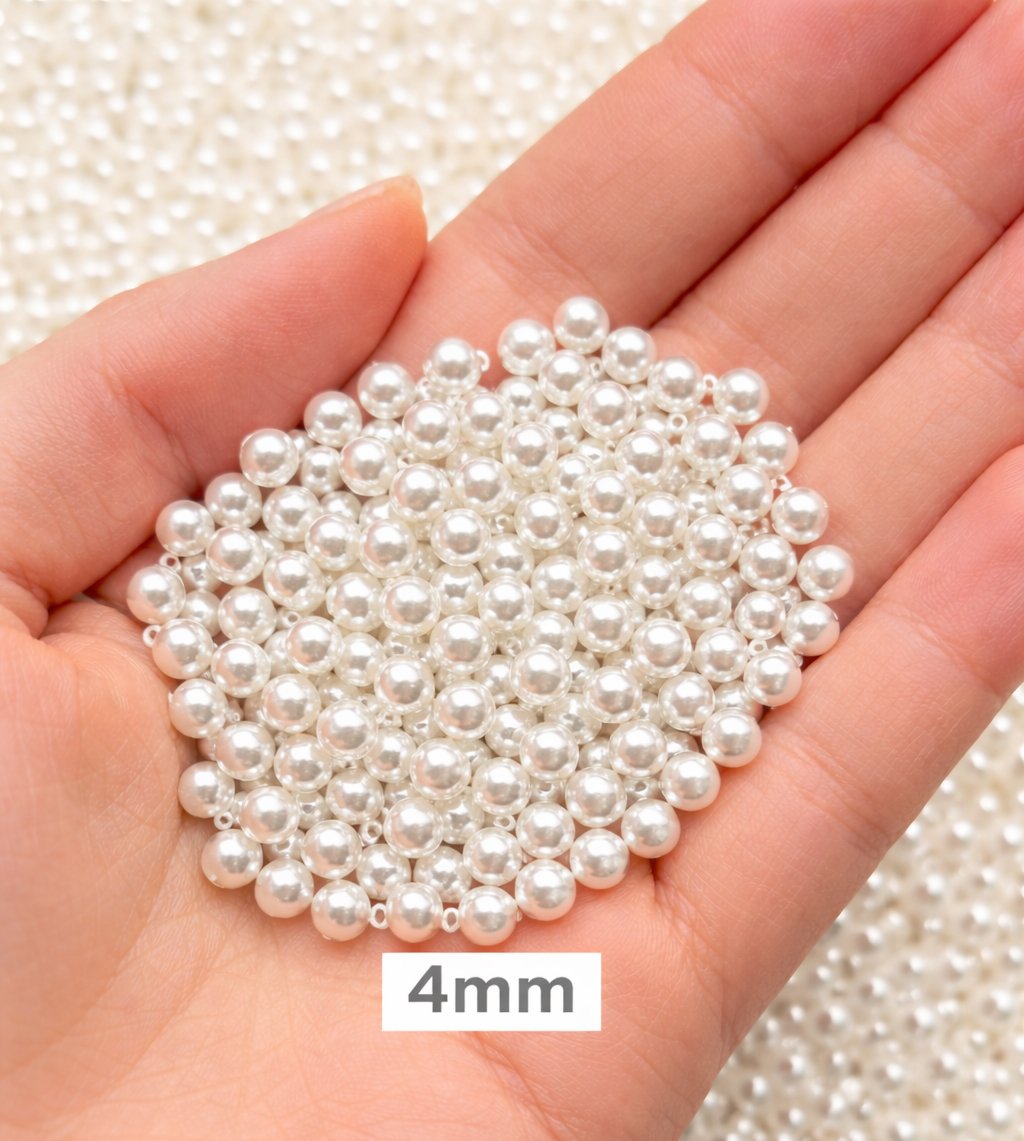 Each pack contains 500 grams of 4mm pearl beads, making it suitable for jewellery makers, craft designers, wholesalers and online sellers who need bulk pearl beads for production.
