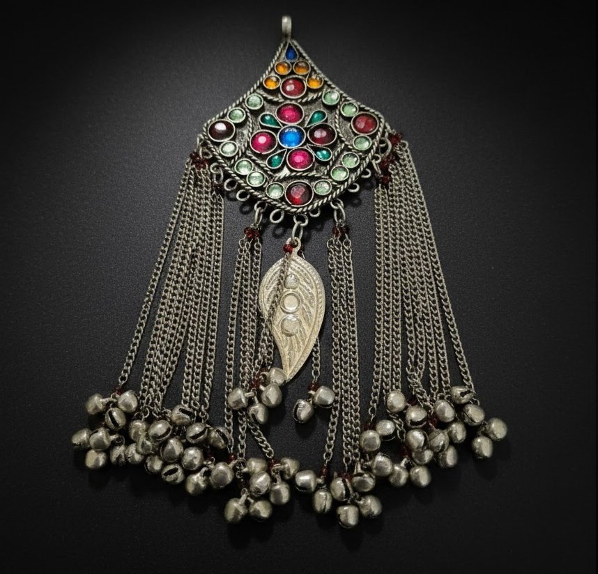 Antique Silver Tribal Afghan Pendant Replica – Vintage Ethnic Statement Jewelry large pendant in size about
