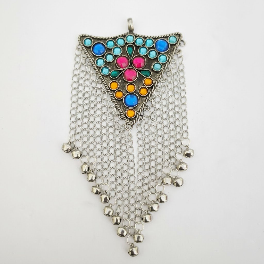 Antique Silver Tribal Afghan Pendant Replica – Vintage Ethnic Statement Jewelry large pendant in size about