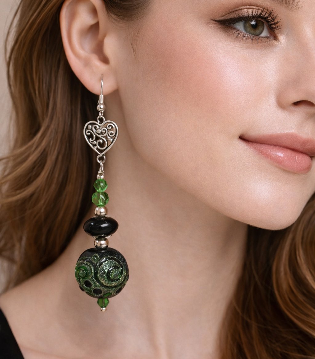 These statement earrings feature premium quality lampwork glass beads paired with elegant silver-toned metal components, creating a perfect balance of traditional craftsmanship and modern style. Whether you’re dressing up for a party, festive occasion, or simply want to enhance your everyday outfit, these earrings add charm and sophistication instantly.