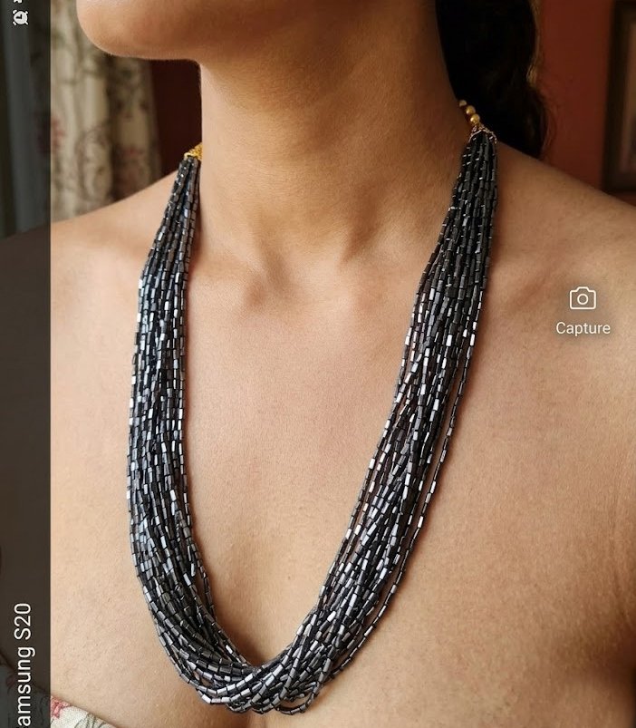 The deep black color combined with the shine of the bugle beads creates a sophisticated and modern look that works perfectly with both ethnic and contemporary outfits. Despite its rich layered appearance, the necklace remains lightweight and comfortable for extended wear.
