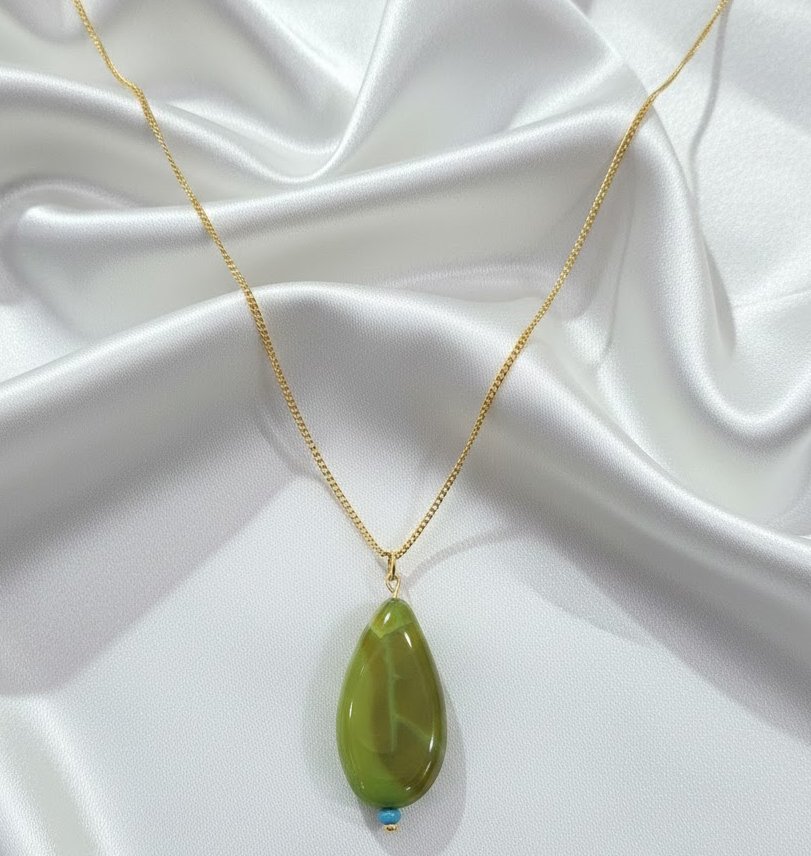 Minimalist necklace. Crafted from glass and metal material, this piece features a delicate chain and a subtle centerpiece, such as Its understated design makes it perfect for everyday wear or layering with other jewelry for a personalized look. Lightweight and versatile, this necklace is the epitome of modern elegance, adding a touch of refinement to any outfit.