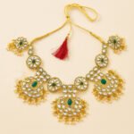 Multi-layer pearl necklace featuring fine white pearl strands paired with a crescent-shaped kundan centerpiece. Finished with a gold-tone setting and classic detailing, this necklace adds timeless charm to festive, bridal, and traditional outfits. Perfect for weddings, receptions, and special occasions.