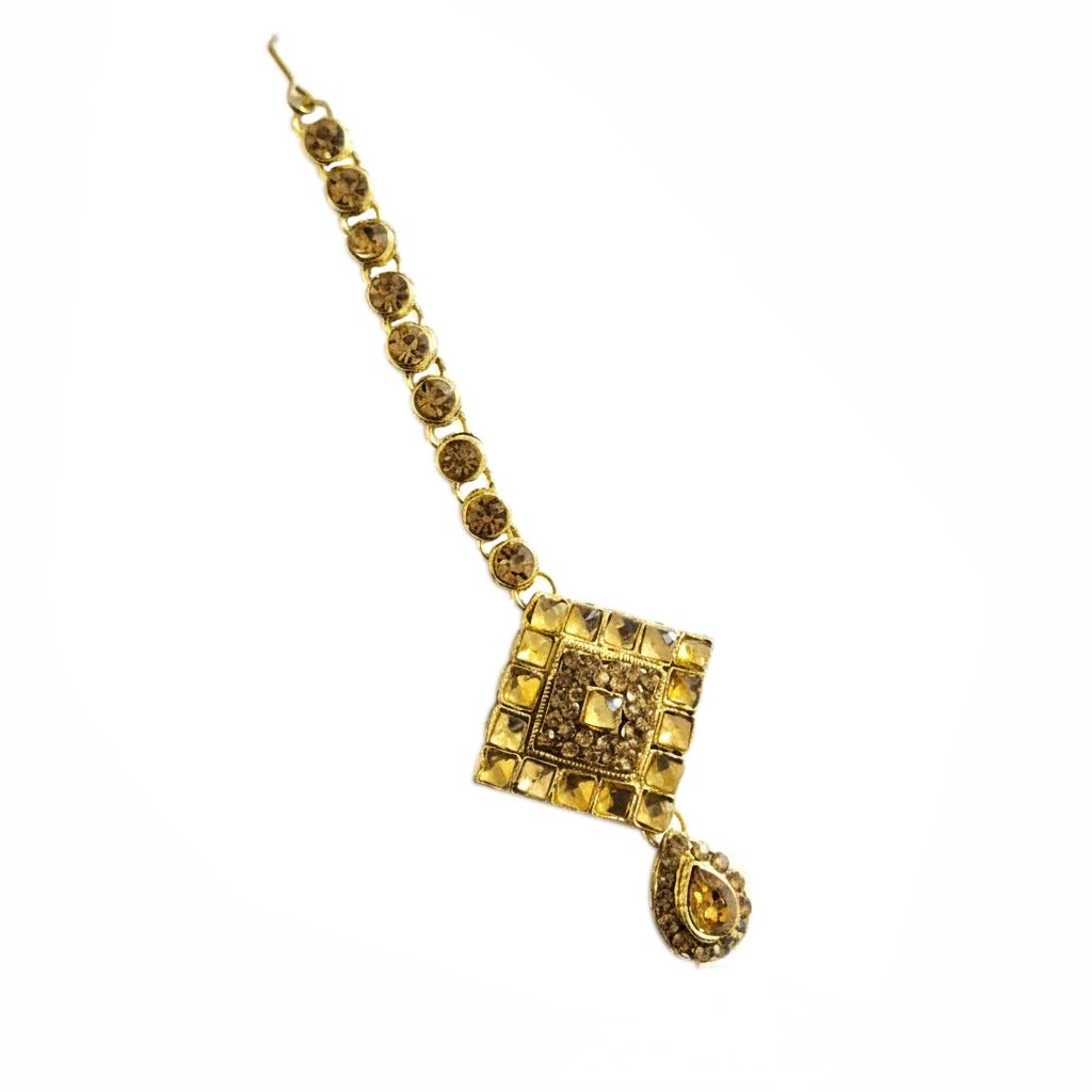 This traditional mang tikka showcases a beautifully crafted square motif adorned with fine detailing and a subtle antique gold finish. The design is enhanced with a graceful teardrop pendant that adds movement and charm. Attached to a neatly set chain for comfortable placement along the hair parting, this piece complements lehengas, sarees, and anarkalis effortlessly. Ideal for weddings, festive occasions, and ethnic celebrations, it brings a classic yet refined touch to your traditional jewelry collection.