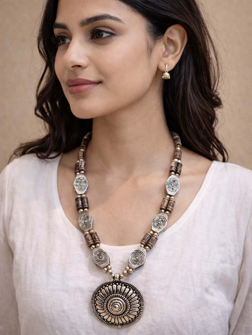 Handcrafted Natural Bead Tribal Necklace – Boho Ethnic Statement Jewelry