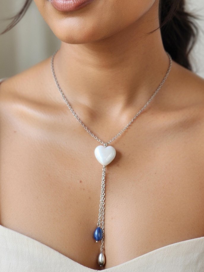 Minimalist necklace. Crafted from glass and metal material, this piece features a delicate chain and a subtle centerpiece, such as Its understated design makes it perfect for everyday wear or layering with other jewelry for a personalized look. Lightweight and versatile, this necklace is the epitome of modern elegance, adding a touch of refinement to any outfit.