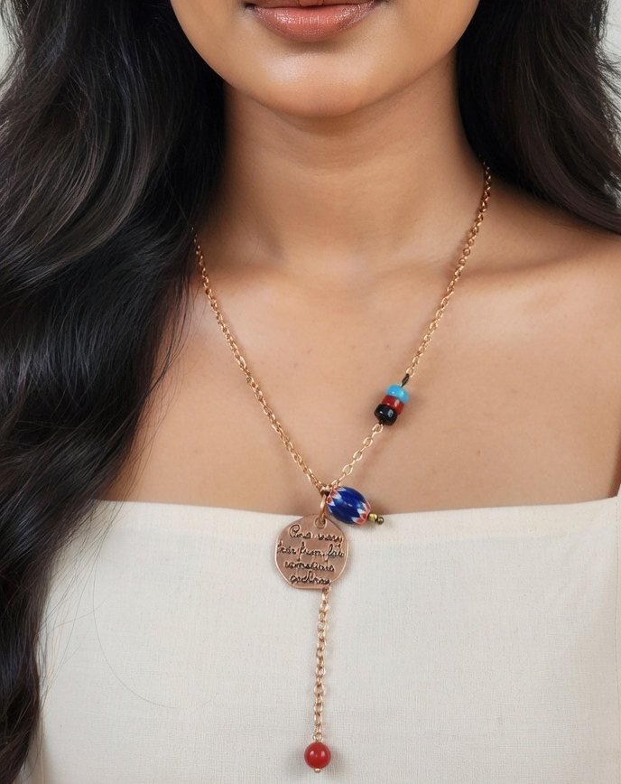 A perfect blend of craftsmanship and contemporary design, this ultra-modern minimalist necklace is thoughtfully handcrafted for the chic, style-forward PC girl. Made from Vintage glass, it features clean lines, geometric accents, and a lightweight, barely-there aesthetic. Its versatile design complements both casual and formal looks, making it a must-have accessory for anyone who values elegance in simplicity. Elevate your style with this timeless piece that celebrates individuality and modern sophistication.