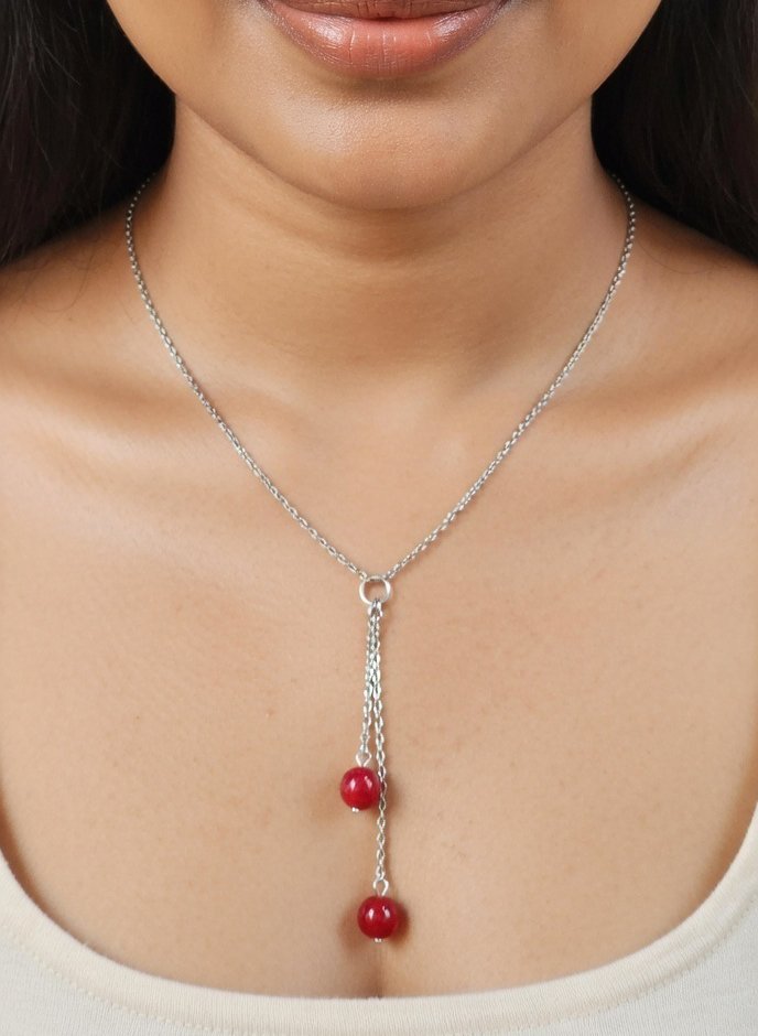 Minimalist necklace. Crafted from glass and metal material, this piece features a delicate chain and a subtle centerpiece, such as Its understated design makes it perfect for everyday wear or layering with other jewelry for a personalized look. Lightweight and versatile, this necklace is the epitome of modern elegance, adding a touch of refinement to any outfit.
