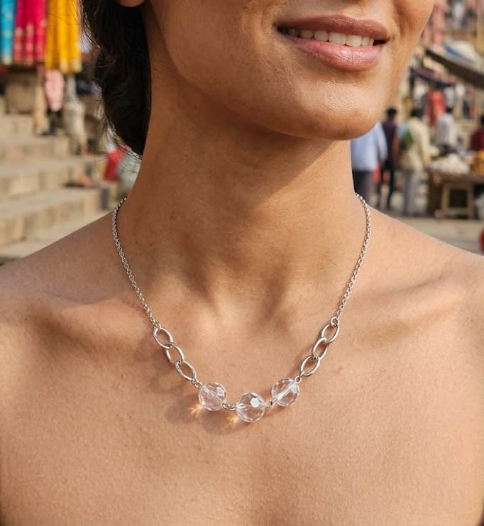 A perfect blend of craftsmanship and contemporary design, this ultra-modern minimalist necklace is thoughtfully handcrafted for the chic, style-forward PC girl. Made from Vintage glass, it features clean lines, geometric accents, and a lightweight, barely-there aesthetic. Its versatile design complements both casual and formal looks, making it a must-have accessory for anyone who values elegance in simplicity. Elevate your style with this timeless piece that celebrates individuality and modern sophistication.