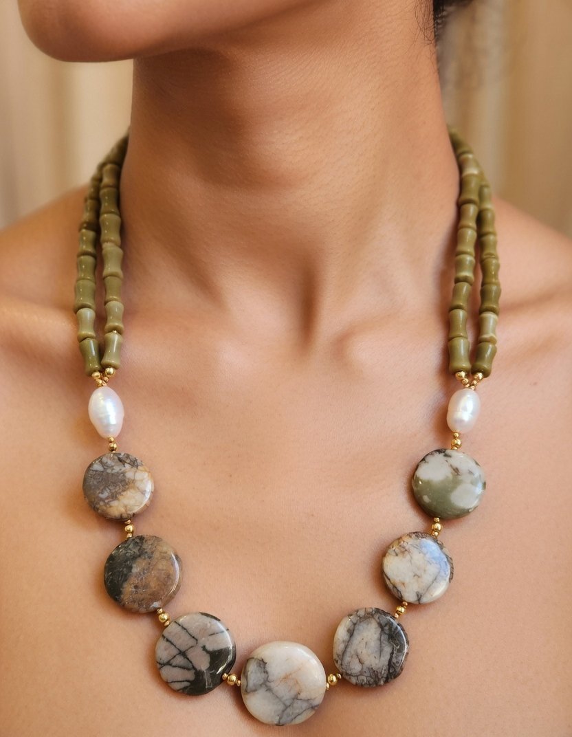 Natural Agate Stone Beads Necklace | Handmade Statement Gemstone Necklace for Women | Elegant Ethnic & Boho Jewelry