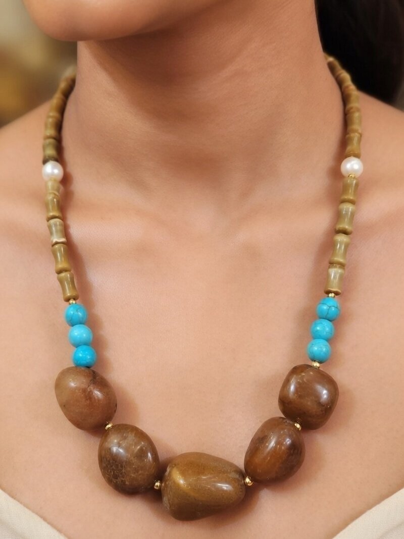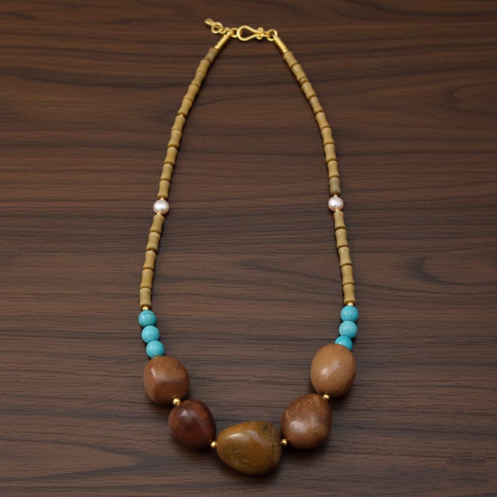 Handcrafted Natural Bead Tribal Necklace – Boho Ethnic Statement Jewelry