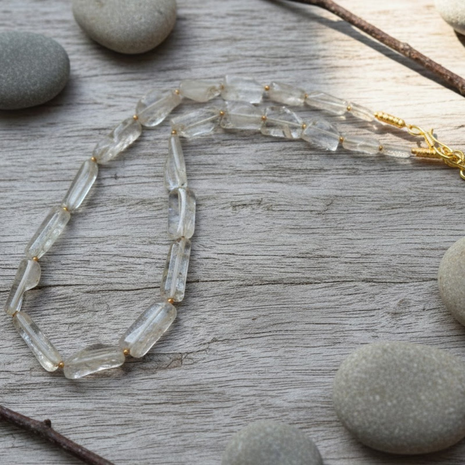 Minimalist necklace. Crafted from glass and metal material, this piece features a delicate chain and a subtle centerpiece, such as Its understated design makes it perfect for everyday wear or layering with other jewelry for a personalized look. Lightweight and versatile, this necklace is the epitome of modern elegance, adding a touch of refinement to any outfit.
