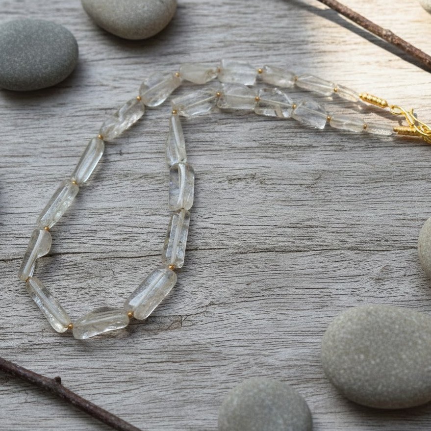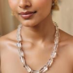 This elegant Agate Stone Beads Necklace is handcrafted using carefully selected natural gemstone beads. Each bead features unique textures, natural color variations, and organic shapes that highlight the beauty of genuine agate stone. The necklace is designed to create a balanced statement look, combining larger centerpiece beads with smaller accent stones. Because natural stones are used, every necklace has its own distinct pattern, making each piece one-of-a-kind. The warm earthy tones and smooth polished finish make this necklace ideal for ethnic wear, casual outfits, boho styling, and festive occasions. Its versatile design allows it to be paired with sarees, kurtis, dresses, or western outfits. Whether worn as a bold statement accessory or layered with other jewelry, this agate necklace adds a natural elegance to any look.