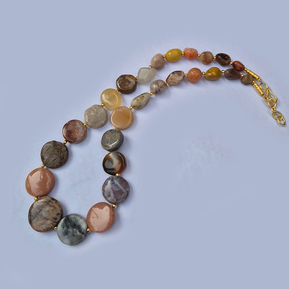 Natural Agate Stone Beads Necklace | Handmade Statement Gemstone Necklace for Women | Elegant Ethnic & Boho Jewelry