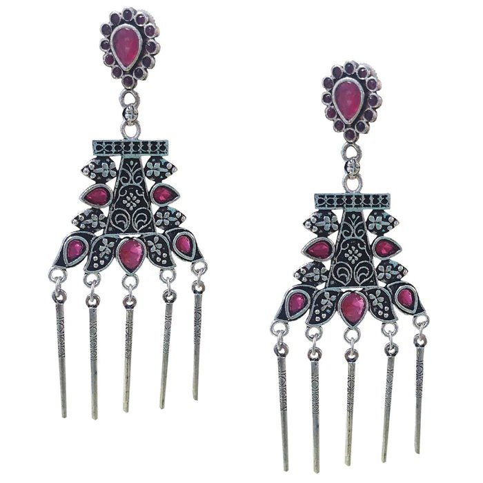 Beautiful oxidized earrings featuring multicolor stones and intricate traditional carving. Perfect for ethnic, festive and boho style looks.