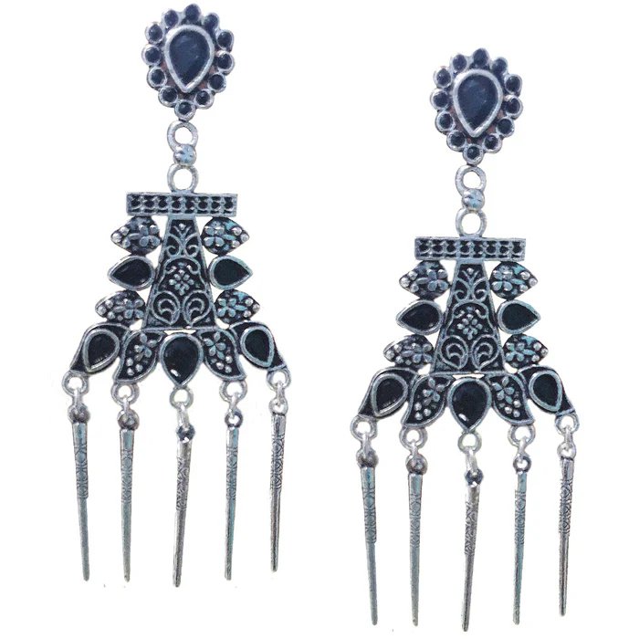 Beautiful oxidized earrings featuring multicolor stones and intricate traditional carving. Perfect for ethnic, festive and boho style looks.
