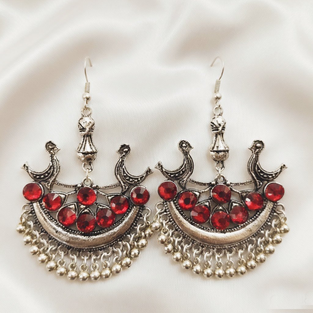 Beautiful oxidized earrings featuring multicolor stones and intricate traditional carving. Perfect for ethnic, festive and boho style looks.