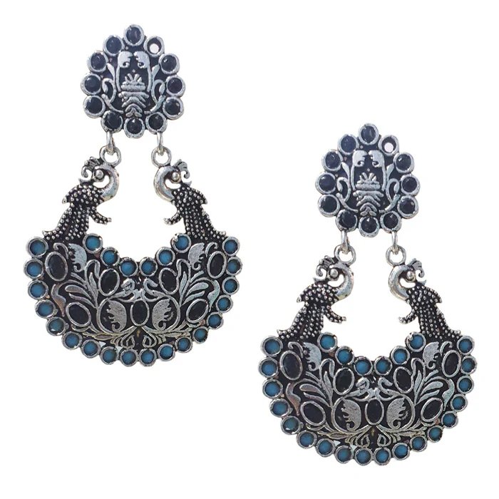 Beautiful oxidized earrings featuring multicolor stones and intricate traditional carving. Perfect for ethnic, festive and boho style looks.