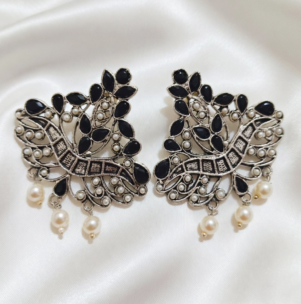 Beautiful oxidized earrings featuring multicolor stones and intricate traditional carving. Perfect for ethnic, festive and boho style looks.
