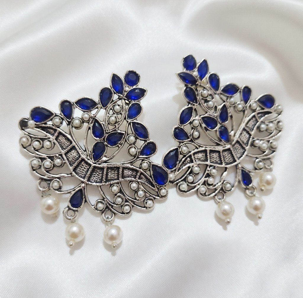Beautiful oxidized earrings featuring multicolor stones and intricate traditional carving. Perfect for ethnic, festive and boho style looks.