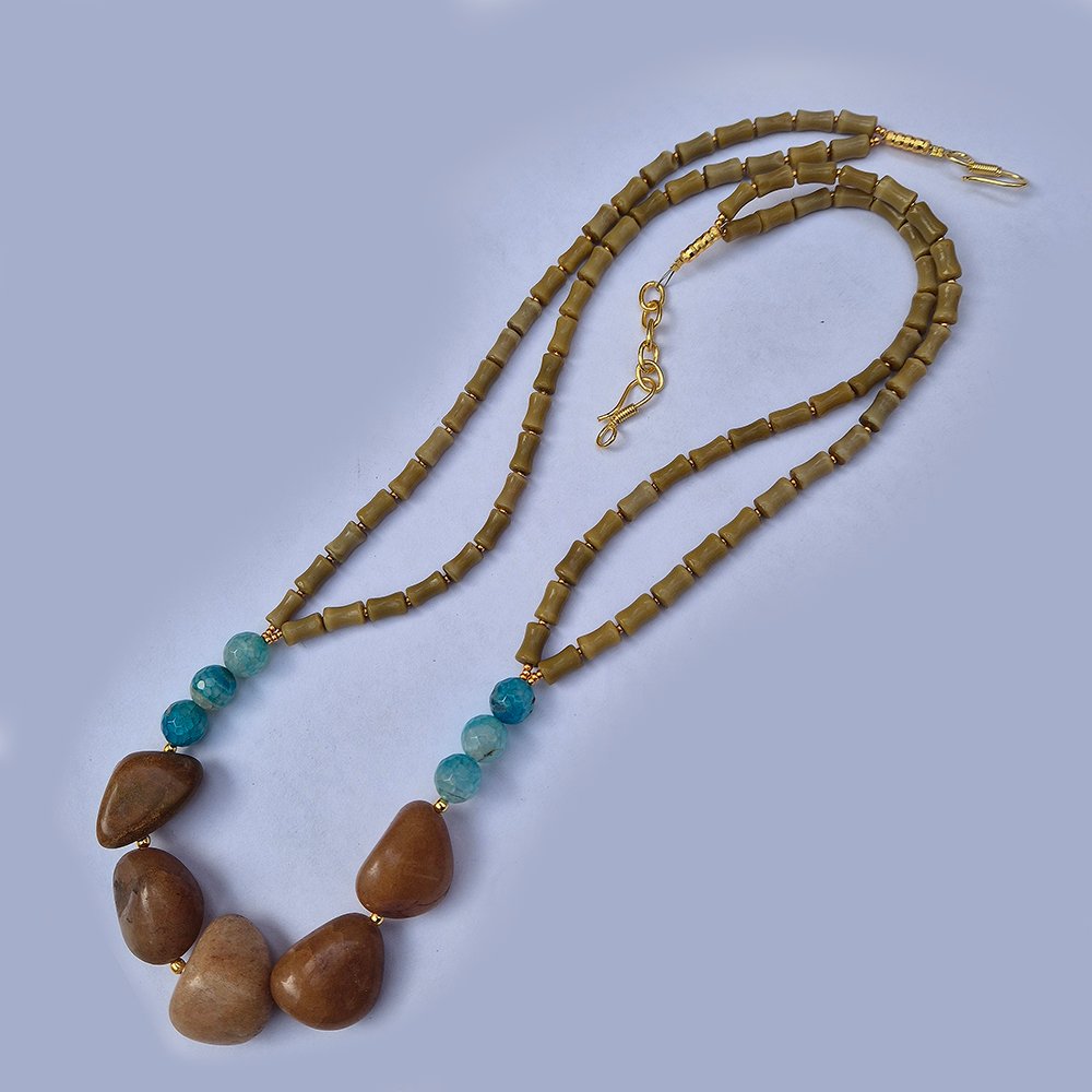 Natural Agate Stone Beads Necklace | Handmade Statement Gemstone Necklace for Women | Elegant Ethnic & Boho Jewelry