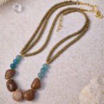 This elegant Agate Stone Beads Necklace is handcrafted using carefully selected natural gemstone beads. Each bead features unique textures, natural color variations, and organic shapes that highlight the beauty of genuine agate stone. The necklace is designed to create a balanced statement look, combining larger centerpiece beads with smaller accent stones. Because natural stones are used, every necklace has its own distinct pattern, making each piece one-of-a-kind. The warm earthy tones and smooth polished finish make this necklace ideal for ethnic wear, casual outfits, boho styling, and festive occasions. Its versatile design allows it to be paired with sarees, kurtis, dresses, or western outfits. Whether worn as a bold statement accessory or layered with other jewelry, this agate necklace adds a natural elegance to any look.