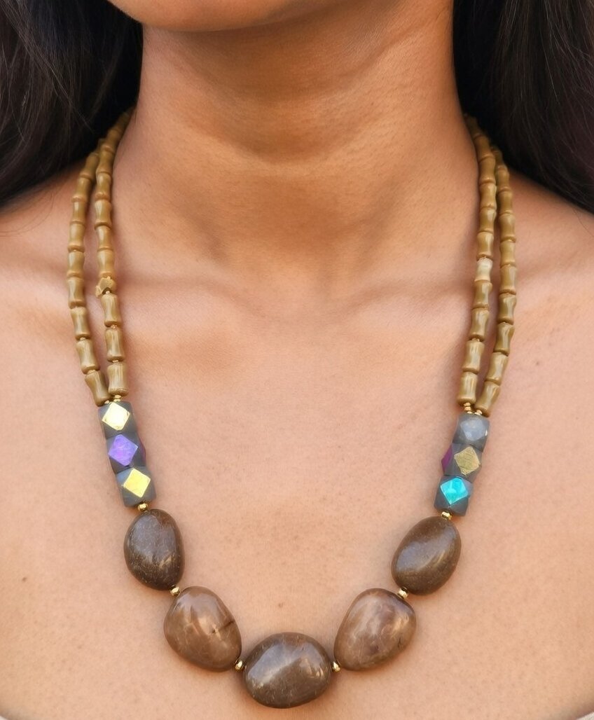 Handcrafted Natural Bead Tribal Necklace – Boho Ethnic Statement Jewelry