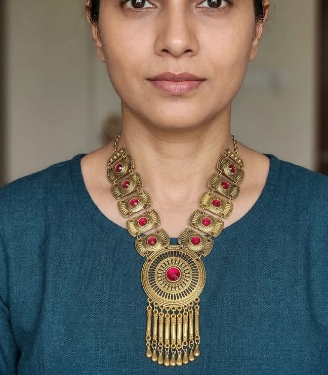 Add a bold ethnic charm to your jewelry collection with this stunning oxidized tribal statement necklace. Inspired by traditional Indian craftsmanship, this necklace features intricate carvings, vintage antique gold finish, decorative beads, and detailed pendants that create a striking ethnic look. The unique tribal and bohemian design makes it perfect for pairing with sarees, kurtis, ethnic dresses, and fusion outfits. Lightweight yet eye-catching, this necklace enhances your overall style with a timeless vintage appeal. Whether worn for festivals, weddings, parties, or casual ethnic wear, this statement necklace beautifully blends traditional artistry with modern fashion. The oxidized finish gives it a classic handcrafted look that never goes out of style. This versatile necklace is ideal for women who love bold ethnic jewelry, boho fashion, and antique gold accessories.