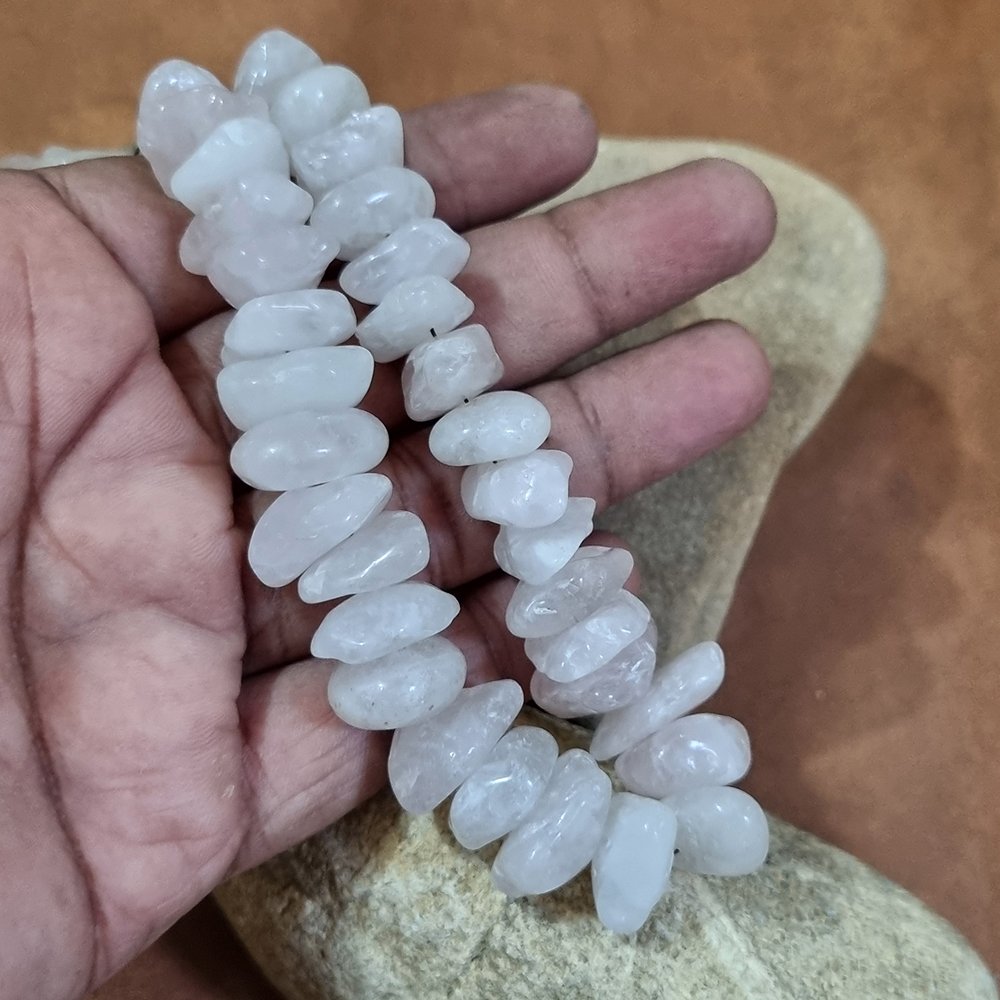 Add a natural sparkle to your creations with these Glass Chips Beads, strung together in a 30 to 31-inch line. These irregularly shaped, tumbled glass beads offer a raw and organic look, perfect for handmade jewelry, boho designs, and craft embellishments. Material: High-quality glass Shape: Irregular chip-style( Uncut) Finish: Semi-polished for a soft shine. Ideal For: Necklaces, bracelets, anklets, earrings, DIY crafts. These versatile chip beads bring a natural and earthy aesthetic, making them a favorite among jewelry makers and artisans.