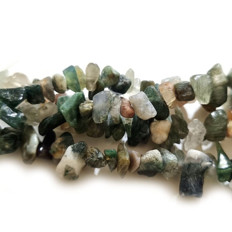 Semi-precious Chips Beads 230+ Beads 40 inches Gemstone name Moss Agate