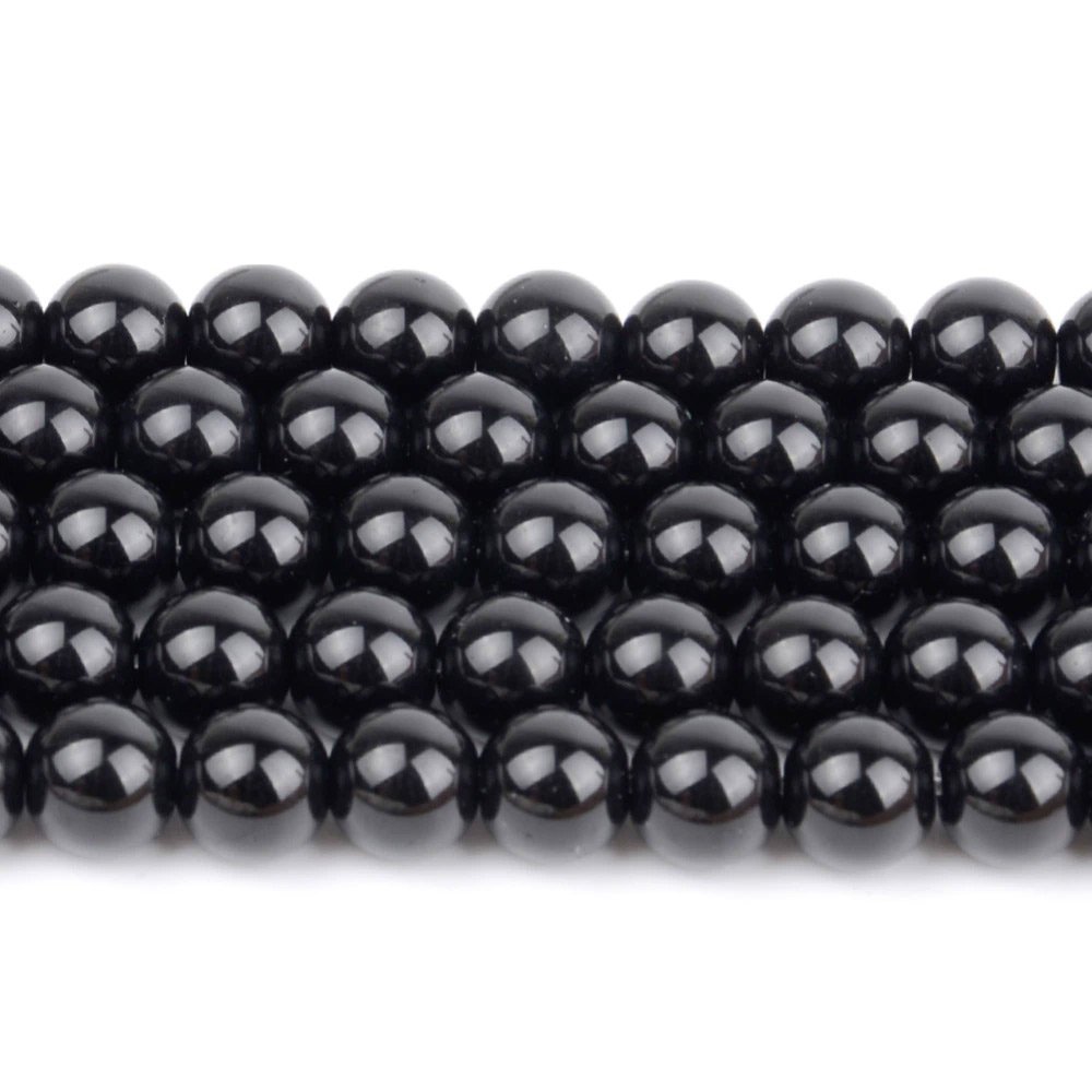 The glossy black finish and classic round shape make these beads versatile for both modern and traditional jewelry styles.