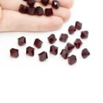 Premium quality 4mm Dark Red Maroon Color, Bi-Cone crystal glass beads available in wholesale pack of 7200 pieces (50 Gross). These faceted spacer beads provide excellent sparkle and are perfect for jewellery making, bracelets, necklaces, earrings, embroidery, and DIY craft projects. Ideal for jewellery designers, craft businesses, and bulk buyers.