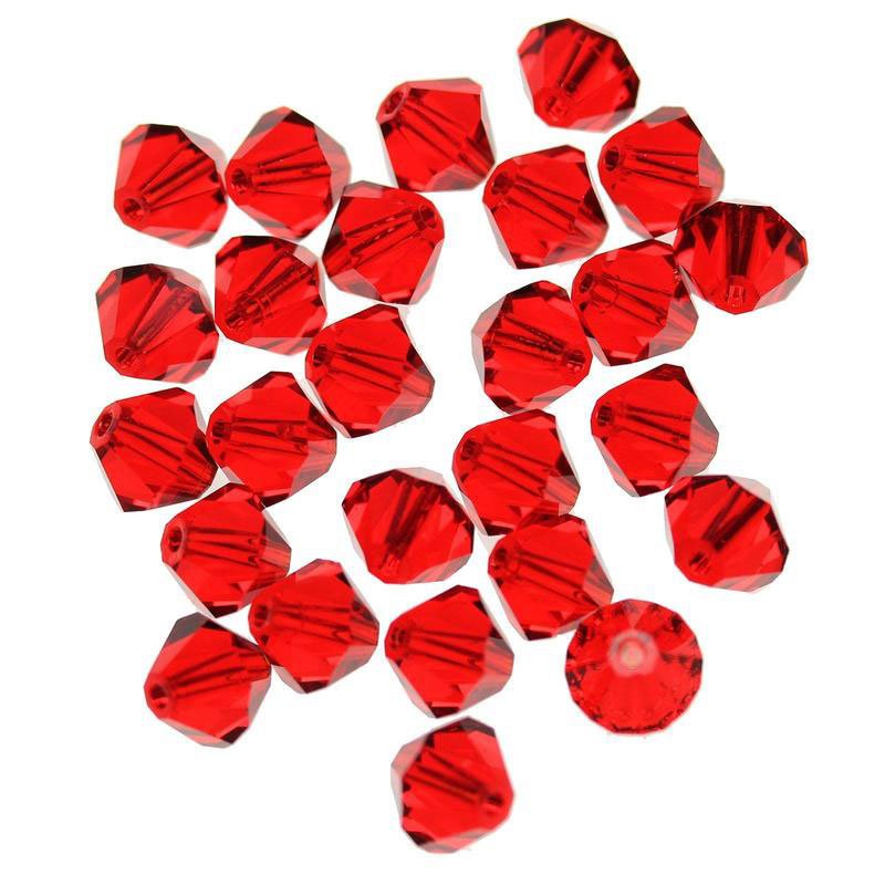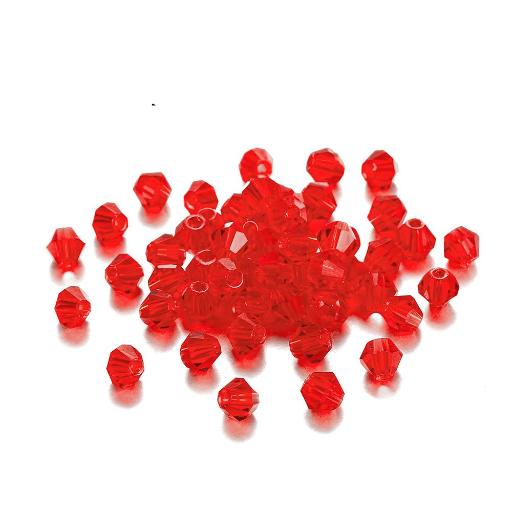 Wholesale (7200 pcs / 50 Gross) – 4mm Bi-Cone Crystal Beads, Red Transparent color, Faceted Glass Spacer Beads for Jewellery Making, DIY Craft Beads Bulk